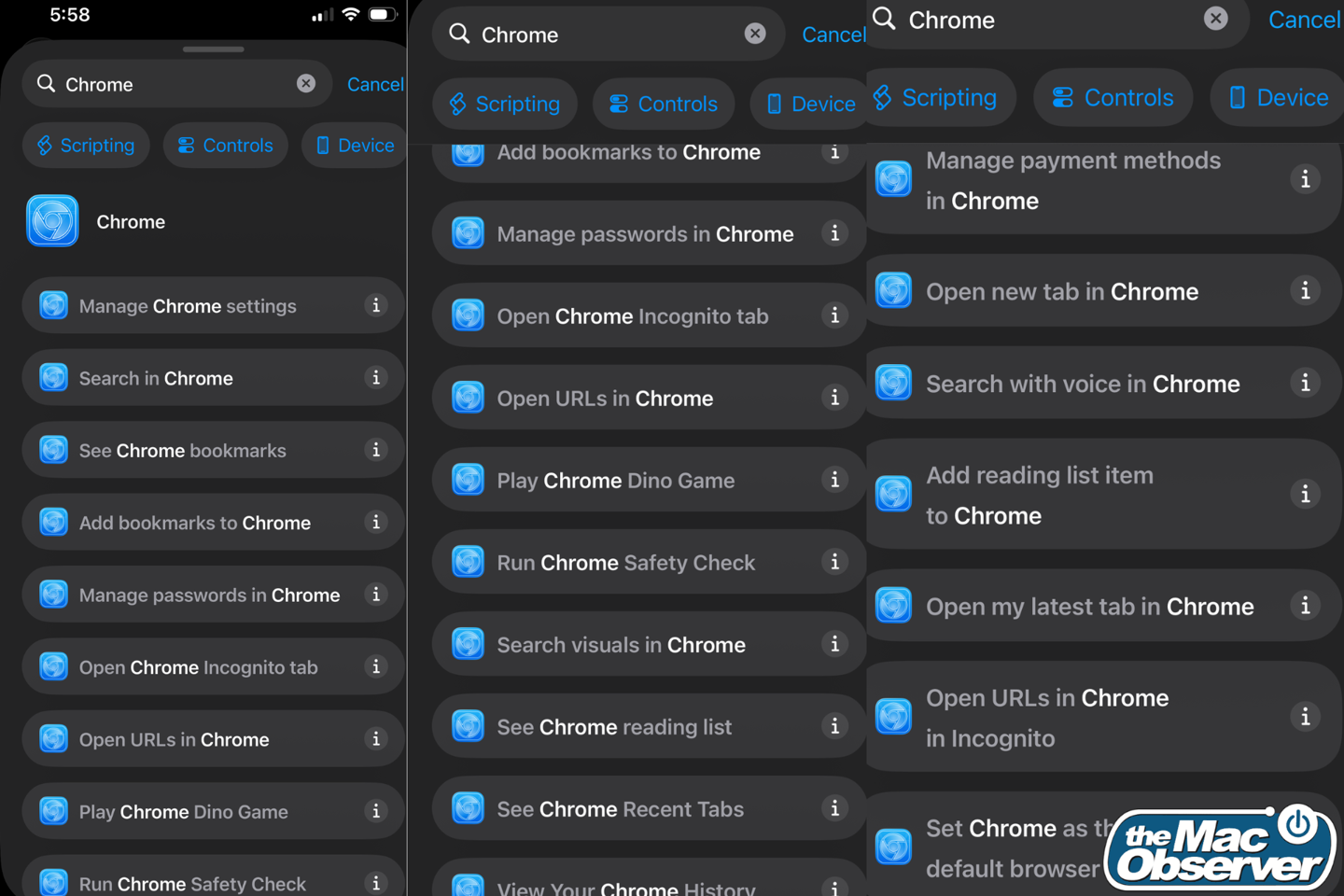 IT之家 4 月 22 日消息,科技媒体 macobserver 今天(4 月 22 日)发布博文,报道称在最新 TestFlight 测试 iOS 版 Chrome 浏览器中,谷歌扩展支持快捷指令(Shortcuts),并深度集成 Siri 体验。